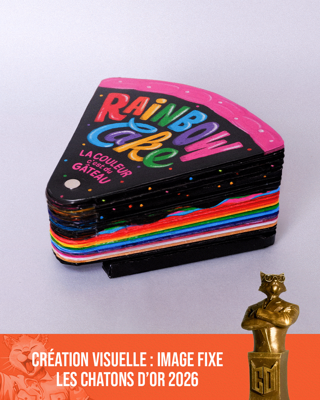 Ensuite, en janvier 2026, Rainbow Cake est récompensé aux Chatons d’Or, dans la catégorie Création visuelle – image fixe, confirmant la pertinence du projet auprès de professionnels des industries créatives françaises.