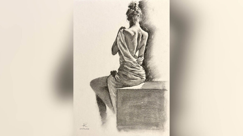 Comme pas mal de monde, je pense, je dessinais quasi exclusivement du manga, sans aucune notion de proportion, de volume, de lumière et d’ombre, etc. La première année, vraiment touche-à-tout, m’a forcé à oublier un peu mon « style » pour apprendre les bases, une par une.